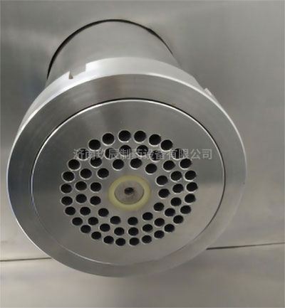 混合后的藥坨,投入料口,在電動(dòng)機(jī)的驅(qū)動(dòng)下。喂料器葉片內(nèi)旋壓入螺旋槽內(nèi),并旋向機(jī)口,因藥坨面積大于孔板的小孔面積而受阻時(shí),藥坨的致密性、溫度、粘度相應(yīng)提高,當(dāng)機(jī)腔過(guò)飽和時(shí),煉好的藥坨從孔板的小孔連續(xù)擠出,供制丸生產(chǎn)使用。