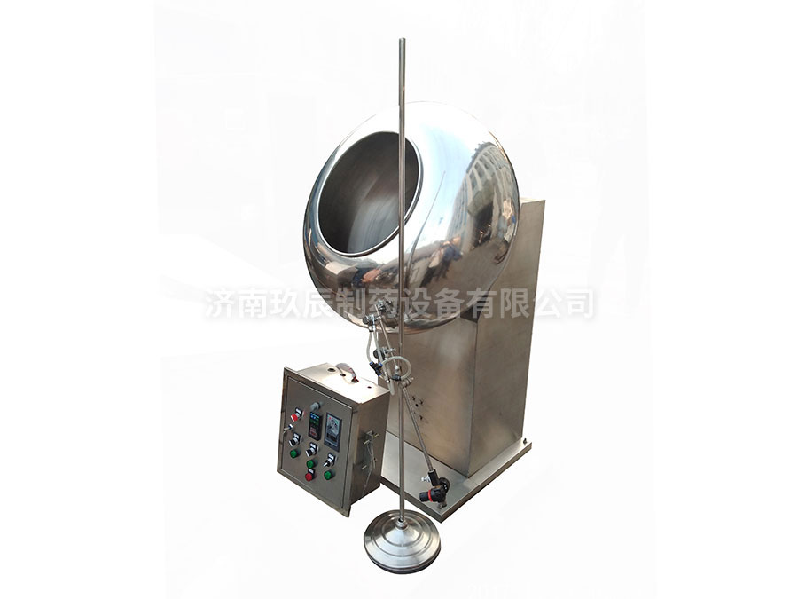開機后鍋內的藥片,在重力、摩擦力的作用下,藥片在不銹鋼包衣鍋體內做復雜運動,當包衣輔料均勻的噴撒在藥片表面后,由送入包衣鍋內的熱風將藥片干燥,這樣經(jīng)過多次循環(huán)使藥片表面的衣膜達到均勻、進行著色、打光,使藥片更加美觀、便于保存及區(qū)分。