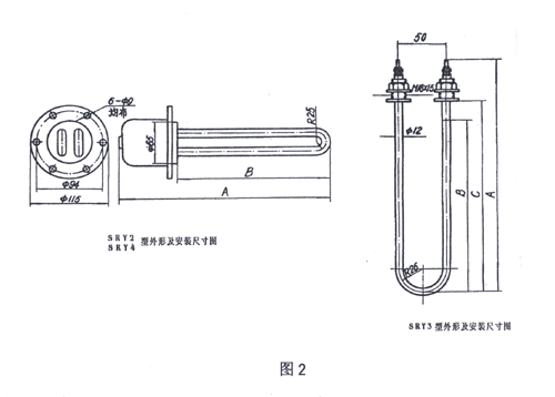 SRY2、SRY3型管狀電加熱器用于敞開或封閉式油槽中加熱油用。SRY4型管狀電加熱器用于加熱流動或循環(huán)的油。